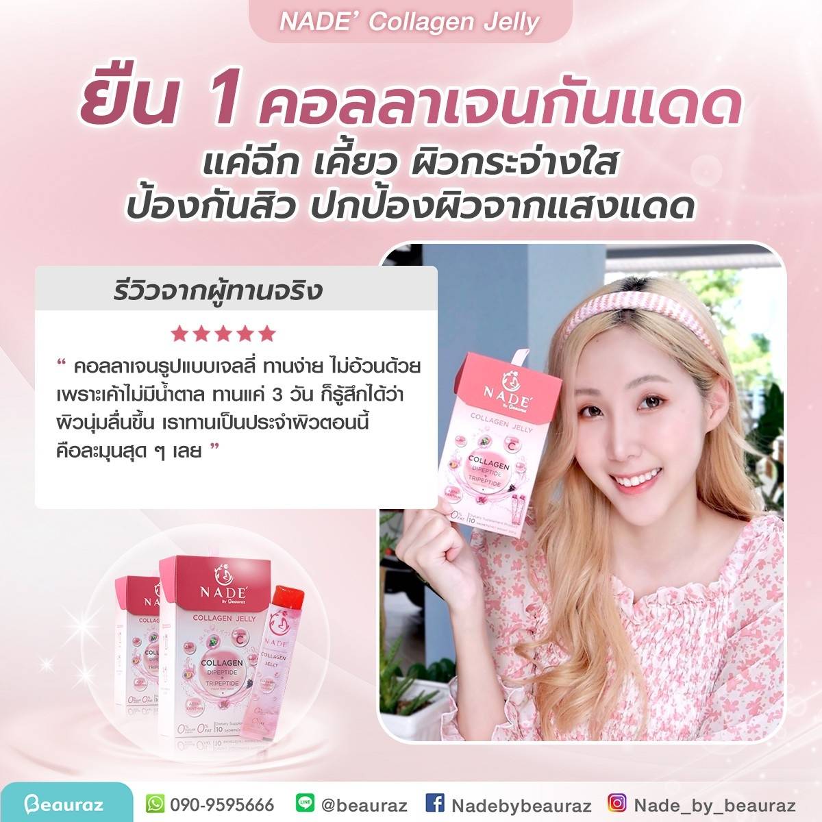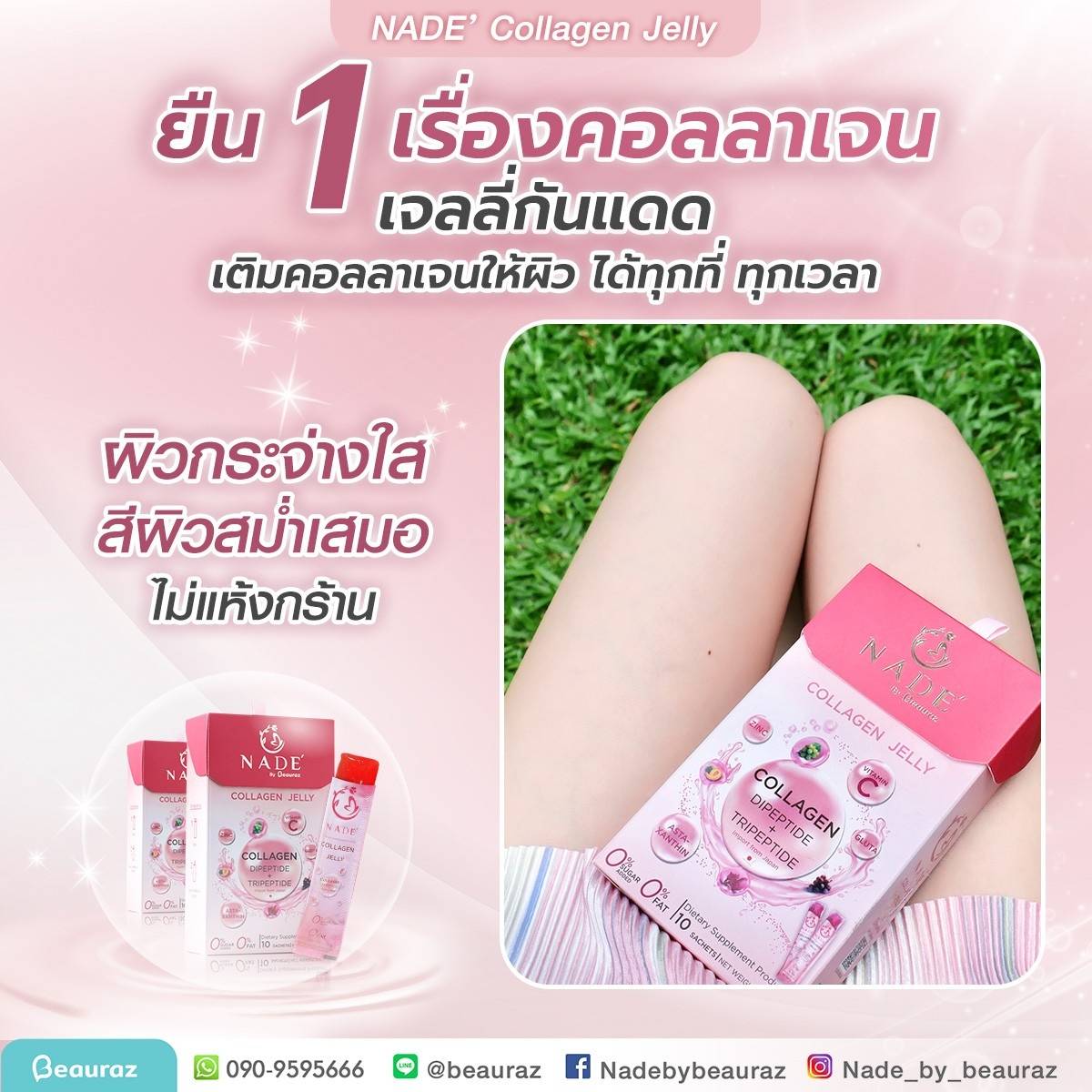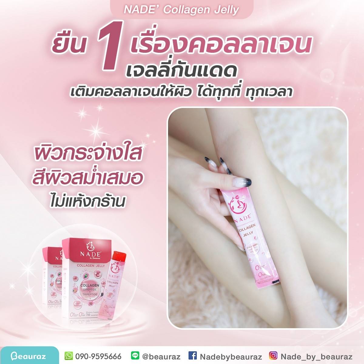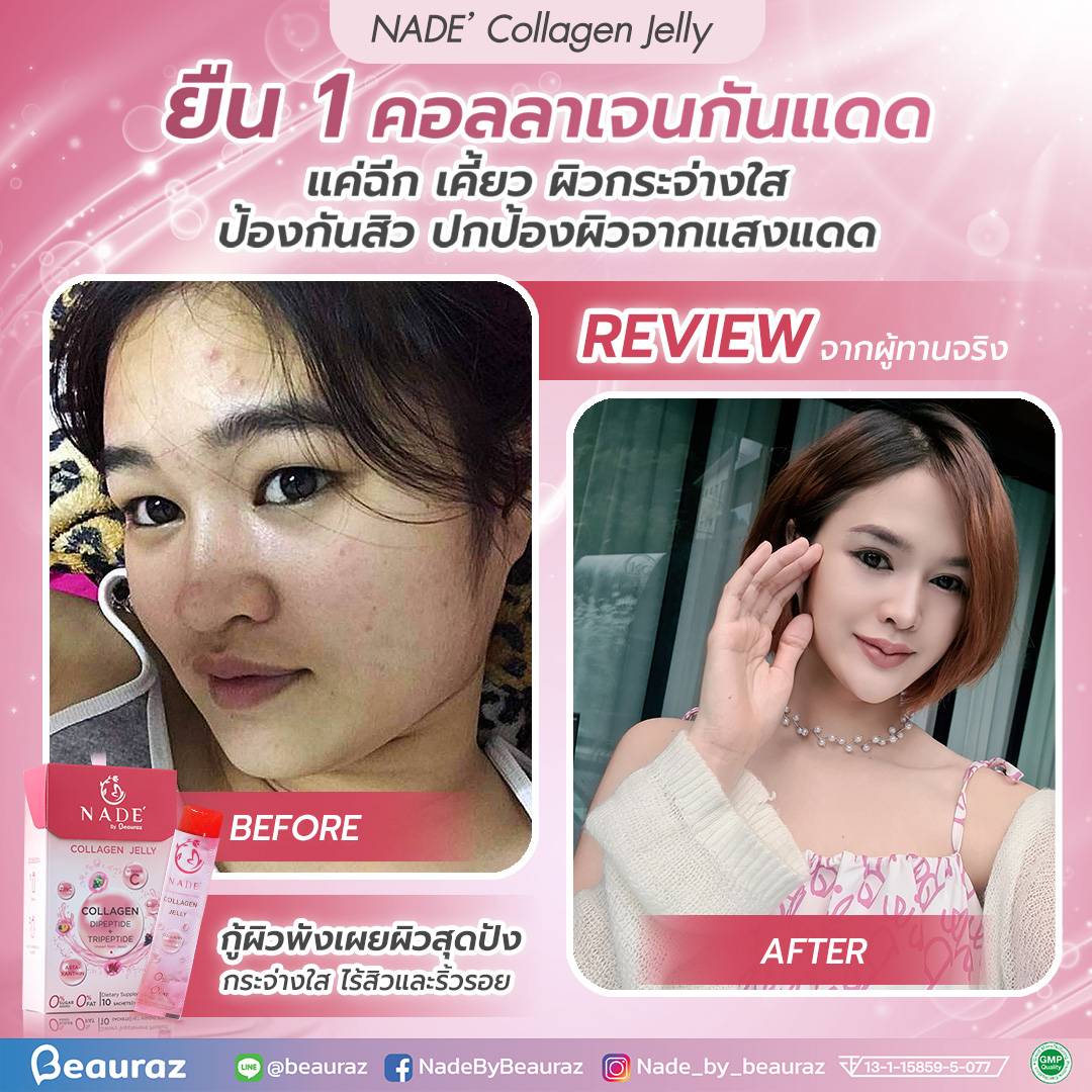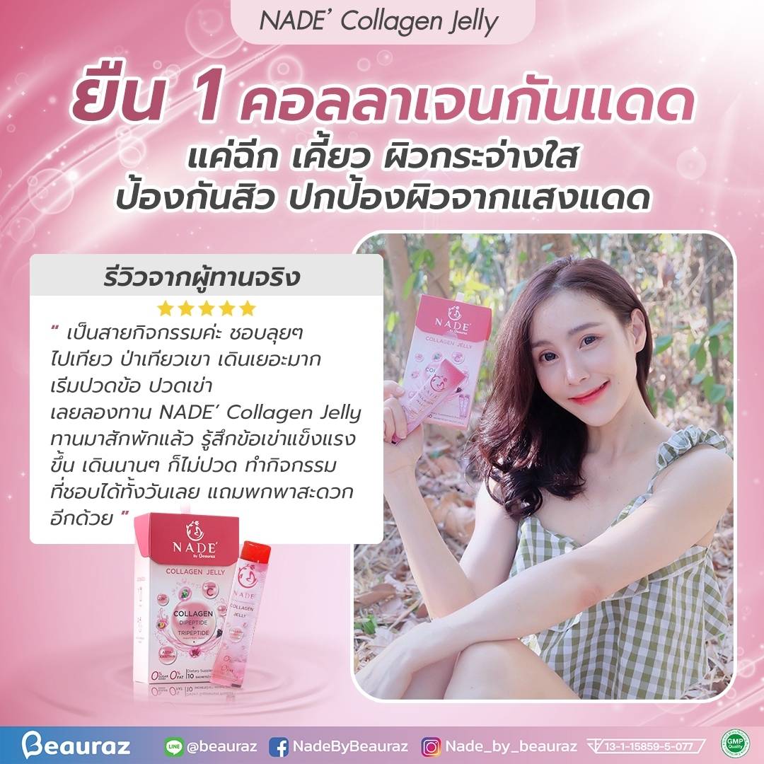 NADE’ Collagen Jelly กระจ่างใส ไร้สิว ปกป้องผิวจากแสงแดด (แบบซองรูปแบบเจลลี่)
