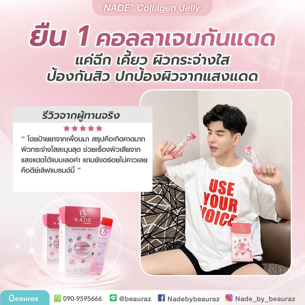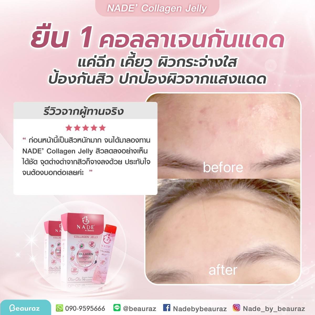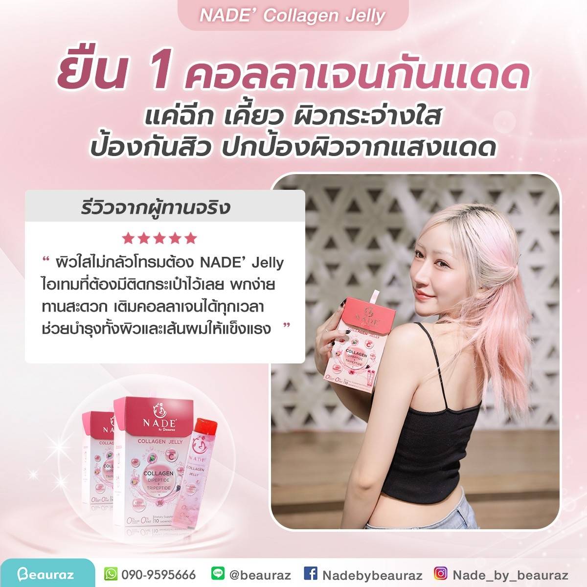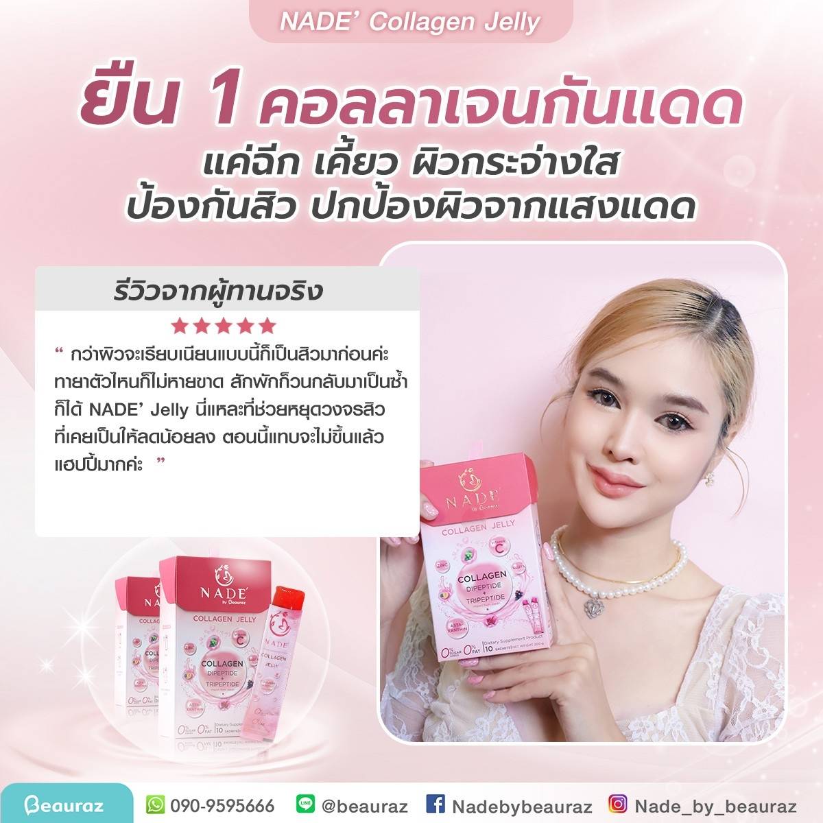 NADE’ Collagen Jelly กระจ่างใส ไร้สิว ปกป้องผิวจากแสงแดด (แบบซองรูปแบบเจลลี่)